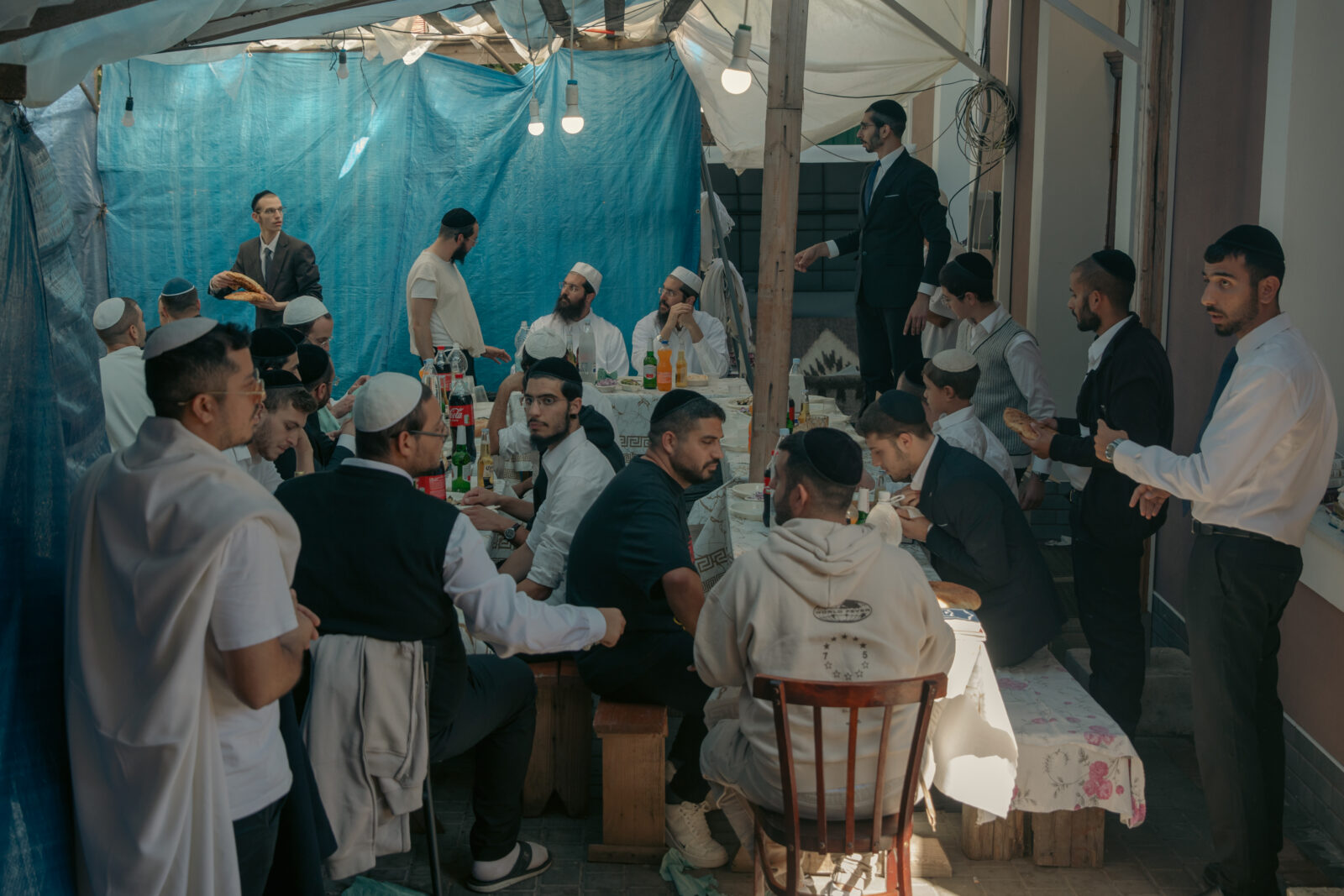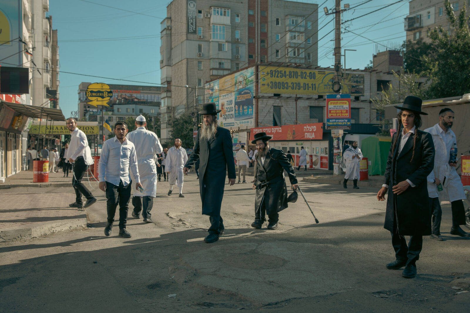 À l’extérieur, certains pèlerins se balancent comme une flamme au cœur de leur prière. D’autres fument, assis sur des chaises en plastique, échangeant des rires ou des bénédictions improvisées. Dans les ruelles voisines, on se croise, on se salue, on se souhaite la bonne année, dans un mélange de langues où se mêlent l’hébreu, le français, le russe et l’anglais.