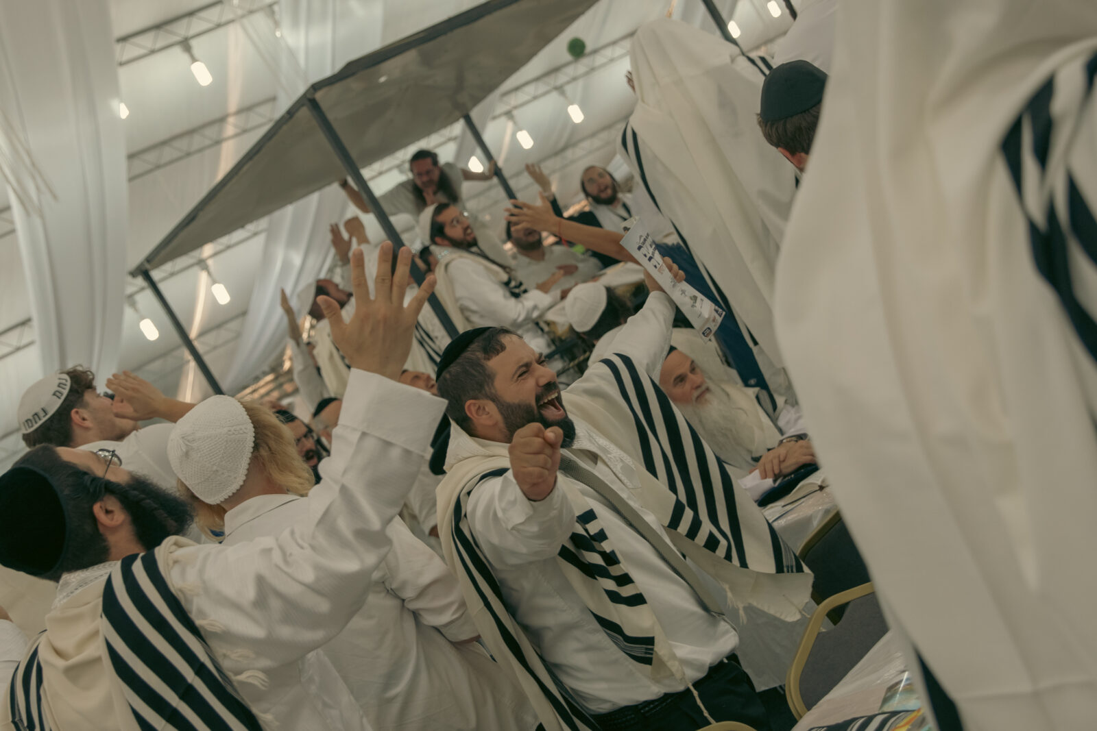 Dans une ronde effrénée, des danseurs entonnent un chant à la mémoire de Rabbi Nahman. Devant sa tombe, des dizaines de fidèles venus du monde entier s’agglutinent, serrés les uns contre les autres, portés par une ferveur qui oscille entre chaos et recueillement, entre exubérance et gravité.