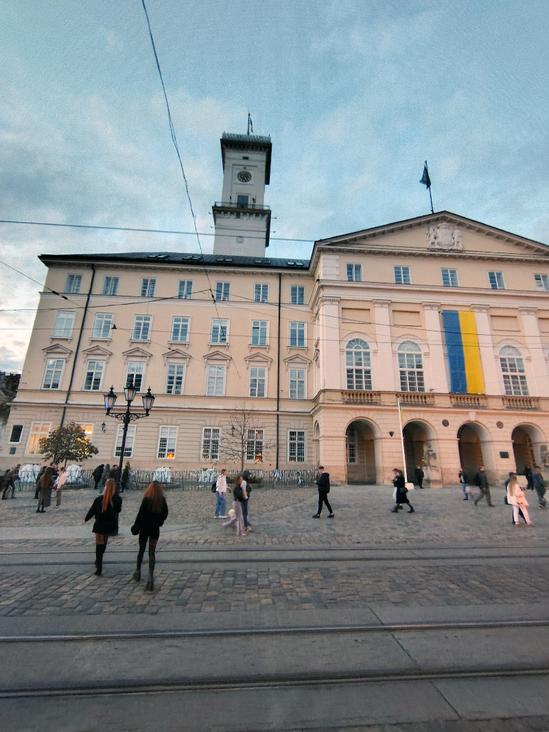 Quelques heures plus tard, Lviv. Le soleil d’octobre baigne la ville d’une lumière douce. Les feuilles craquent sous les pas, les façades austro‐hongroises retrouvent leurs reflets dorés. À première vue, rien ne trahit la guerre. Et pourtant, elle est là, diffuse. Dans les regards, dans ces applications que tout le monde garde sur son téléphone, prêtes à sonner.