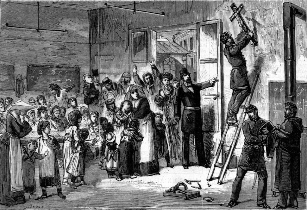 Un siècle passe, durant lequel se consolide l’idée de laïcité, notamment quand, dans les années 1870, les républicains deviennent majoritaires dans les assemblées. Il en va ainsi par exemple des lois Jules Ferry en 1881–1882 qui instaurent l’école élémentaire gratuite, obligatoire et laïque, ou de la loi Goblet de 1886 qui remplace les instituteurs religieux par des enseignants exclusivement laïcs.