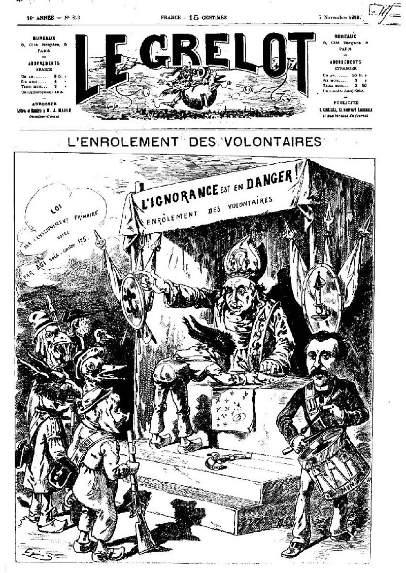 Hors des chambres parlementaires, la nation s’agite aussi autour de cette question, notamment lorsqu’une partie de la hiérarchie catholique prend le parti antidreyfusard à la fin du XIXe siècle. L’anticléricalisme devient alors aussi un signe de républicanisme même si beaucoup, à l’image de Jules Ferry, prennent la peine d’expliquer qu’ils combattent l’influence politique des religieux et non la religion : « Oui nous avons voulu la lutte anticléricale, mais la lutte antireligieuse, jamais, jamais ! » (1881).