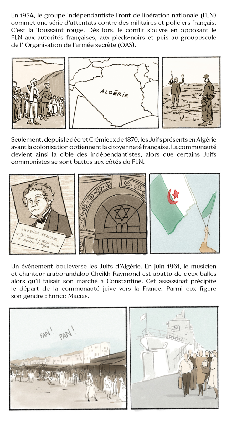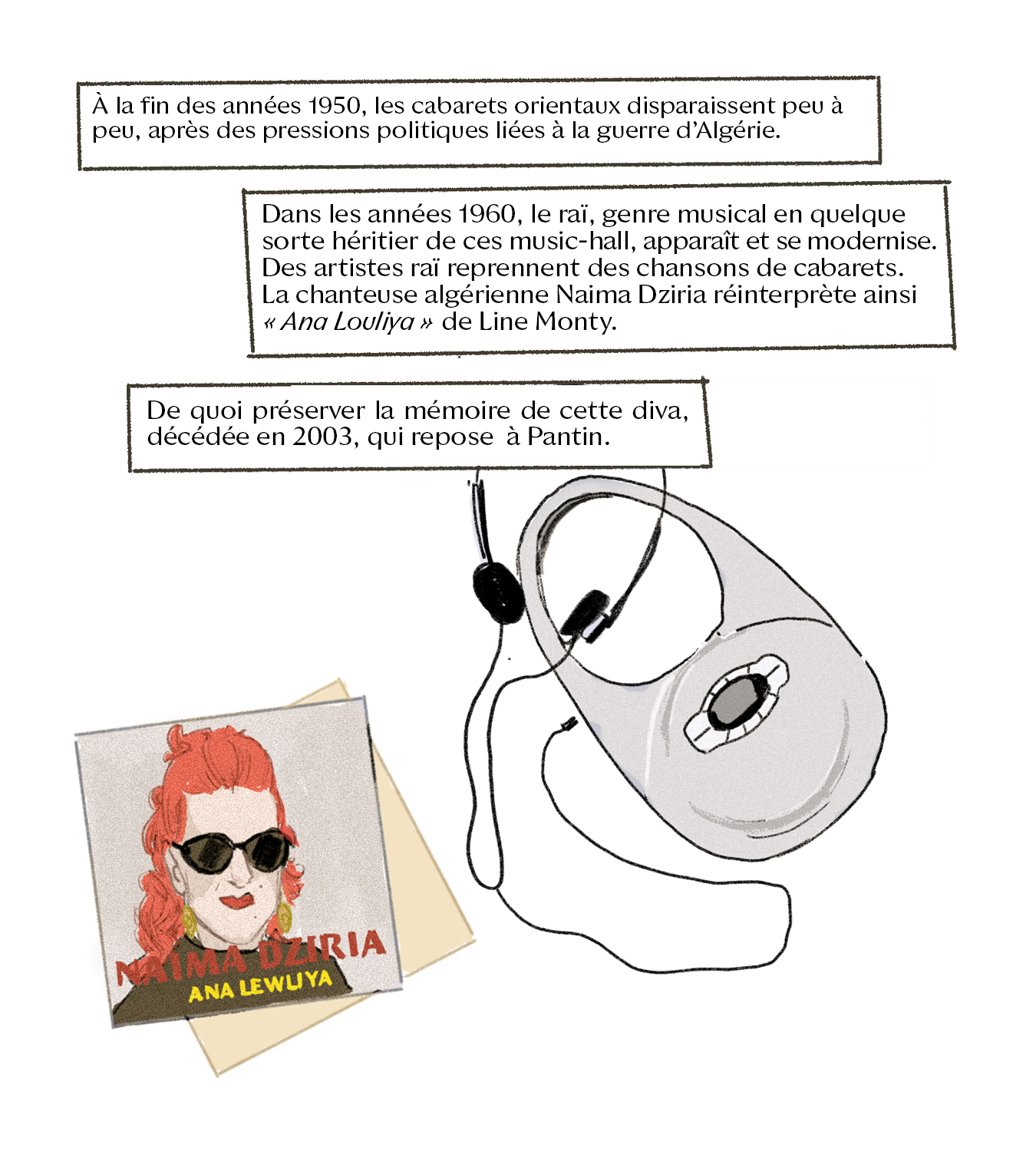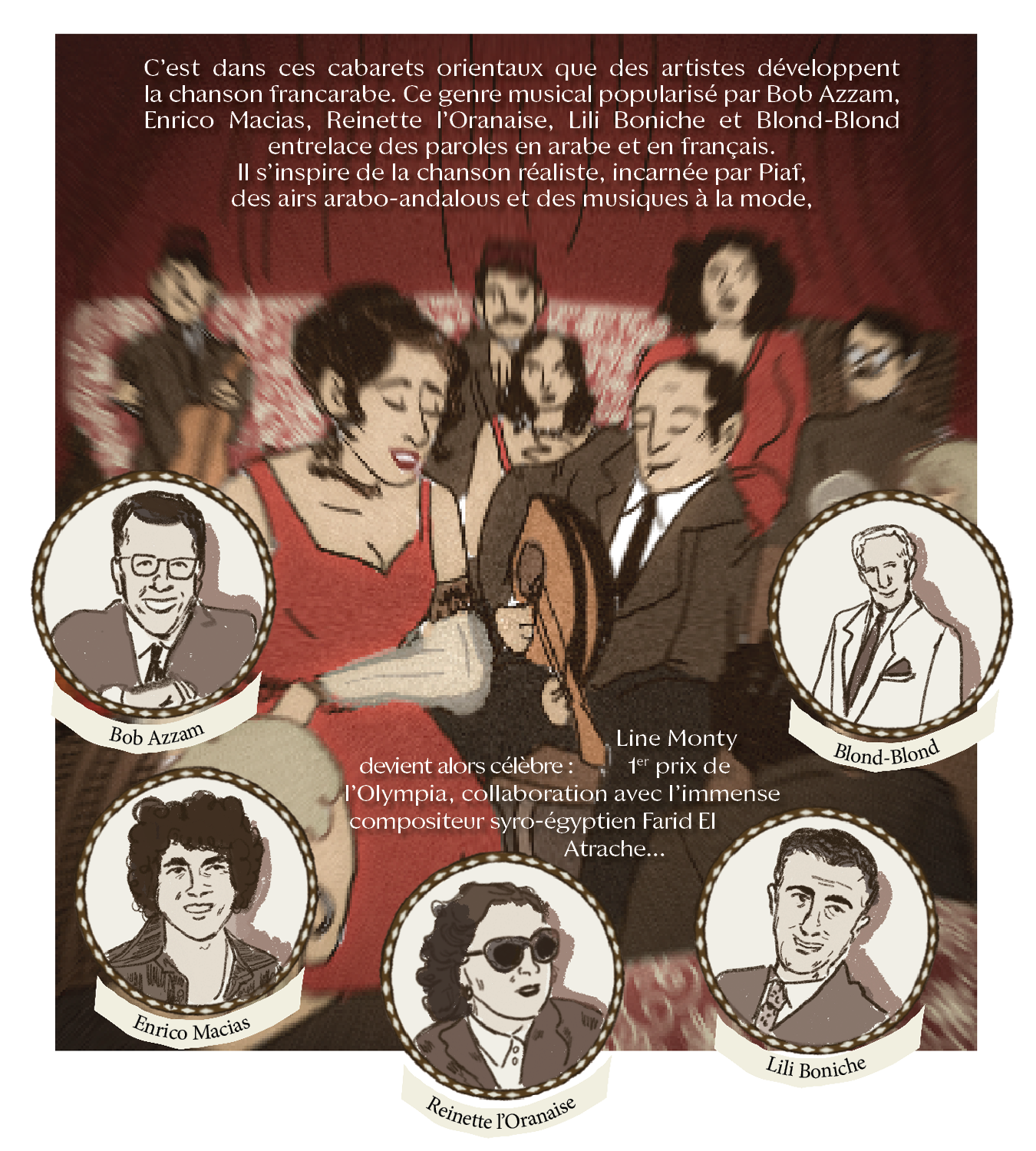 Avec “Divas d’Or”, Camille Scali met en lumière des icônes juives des régions de Méditerranée, du Moyen‐Orient et du Sud‐Caucase, à travers une série en bande dessinée, mêlant musique, histoire et géopolitique. Dans ce deuxième épisode, place à Line Monty, icône des cabarets orientaux à Paris dans les années 1950 et grande figure qui incarne l’exil des Juifs d’Algérie.