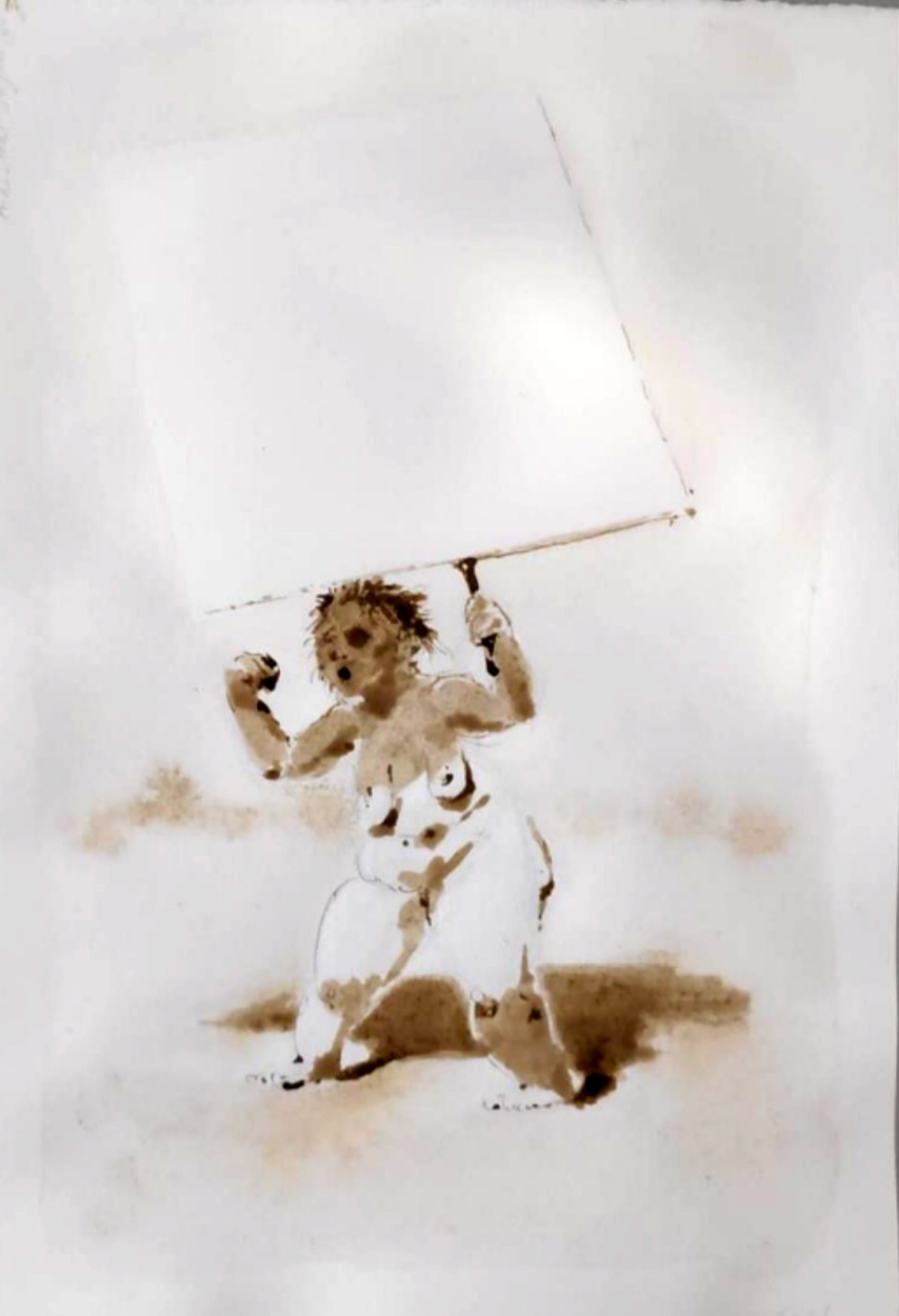MS – L’art n’est pas seulement un refuge ; il propose de nouvelles façons de voir. Tel une fenêtre ou un miroir, nous regardons au travers vers l’extérieur et sommes parfois contraints de plonger au plus profond de nous‑mêmes. Le dessin, dans cette exposition, n’est pas seulement un moyen de documentation, mais un acte de résistance : lorsque même la ligne la plus simple est chargée des matériaux d’une réalité surréelle, elle interdit d’ignorer la condition existentielle. Le dessin génère des couches de sens, entre le personnel et le collectif, entre la mémoire et la perte, entre un passé qui saigne et un présent tout aussi sanglant.