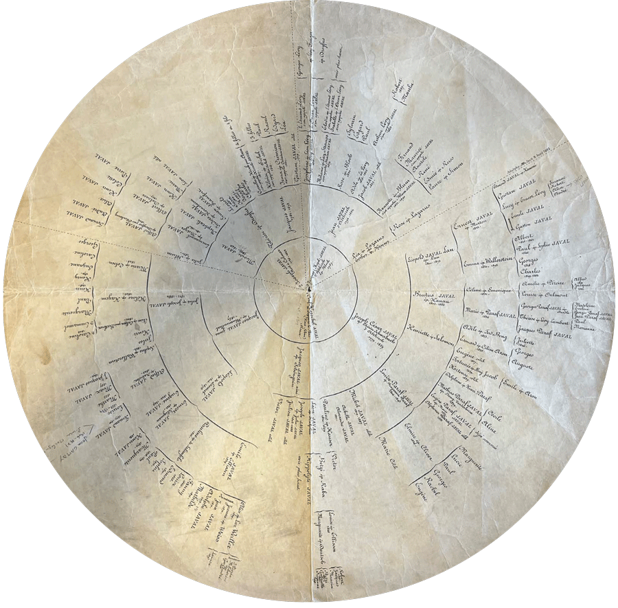 C’est en 2013, à la mort de ma grand‐mère, que j’ai souhaité en savoir plus. Et, surtout, c’est à partir de ce moment‐là que mon cerveau a commencé à imprimer, à retenir les informations que je croisais, que j’ai commencé à ouvrir des portes sur la famille Javal. Sur Wikipedia, je découvre la page consacrée aux Javal et je me rends compte que ma grand‐mère n’apparaît pas dans l’arbre généalogique, je l’ajoute donc. Progressivement, je m’engage dans ce que l’on pourrait appeler un processus de « ré‐appartenance ».
