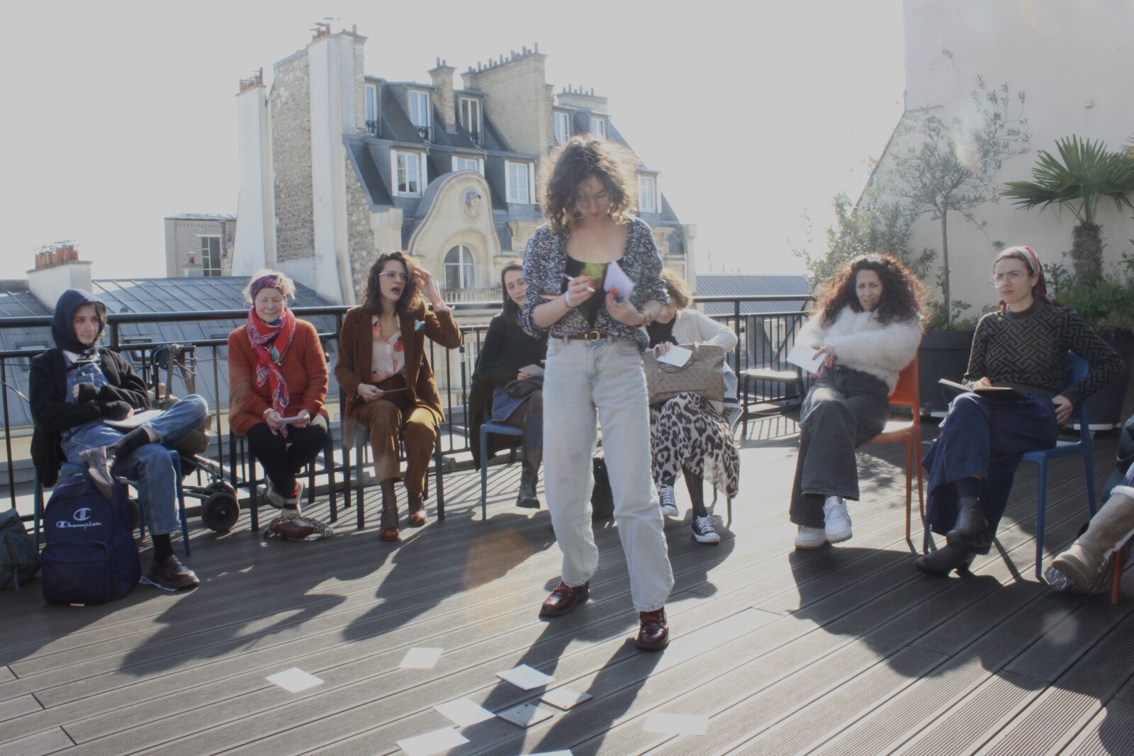 C’est à ce moment‐là que Jeanne Joury Juroszek (aussi connue sous le nom d'Eva Vocz), alors chargée de plaidoyer chez Act Up et artiste‐performeuse, rejoint le collectif : « Au départ, j’ai rencontré Johanna pour témoigner dans son podcast. Puis j’ai assisté, en tant que spectatrice, au festival Notre Haggadah de l’année dernière. C’était un moment très fort. Les femmes qui étaient venues ne voulaient plus partir. Il y a dans ce collectif une indulgence vis-à-vis de l’autre et une ouverture aux idées différentes que je n’ai trouvées nulle part ailleurs dans la société. » Jeanne, à l’inverse de Johanna, a grandi dans une famille non pratiquante. Du judaïsme, on lui a surtout transmis « de belles valeurs, des valeurs humanistes, d’ouverture sur l’autre, de tolérance… Et des documentaires sur la Shoah. » Après le 7 octobre 2023, beaucoup de ses croyances s’effritent : « Avant j’avais confiance en l’Homme, d’instinct, je croyais que tous étaient bons. Maintenant je me dis que tous les hommes sont antisémites jusqu’à preuve du contraire. Je pensais aussi qu’être assimilée m’éviterait de subir de la haine, et c’est faux, ça ne change rien ». Elle se dit également déçue des féministes : « Il y a deux types de féminismes, le féminisme universaliste et le féminisme intersectionnel. J’ai l’impression que la seule chose qui les mette d’accord, c’est de ne pas condamner les attentats du 7 octobre. Dans ces mouvements, l’antisémitisme est légitimé, voire amplifié… »